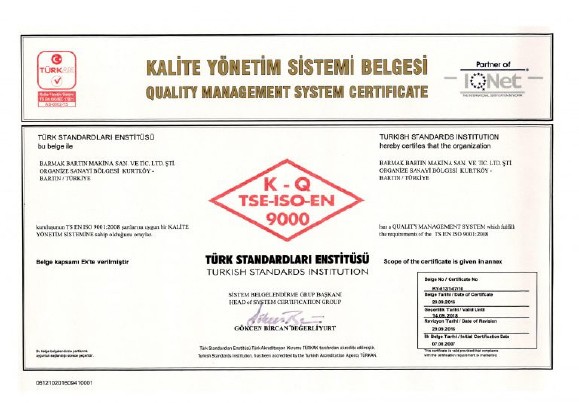 KALİTE YÖNETİM SİSTEMİ BELGESİ