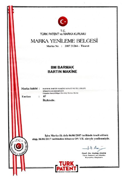 TÜRK PATENT ENSTİTÜSÜ MARKA TESCİL BELGESİ